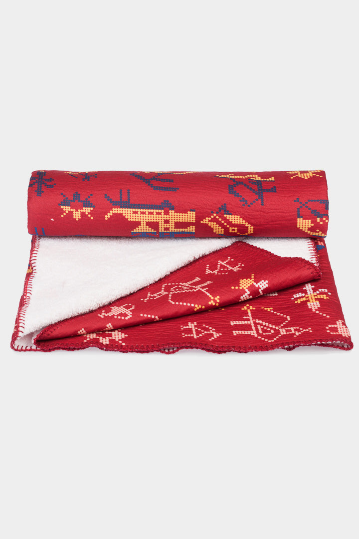 Luxurious premium beach towels of digitally printed handcraft, featuring post modern and contemporary interpretations of century old Greek traditional folk decorative symbols with coloured hand stitched finishing.